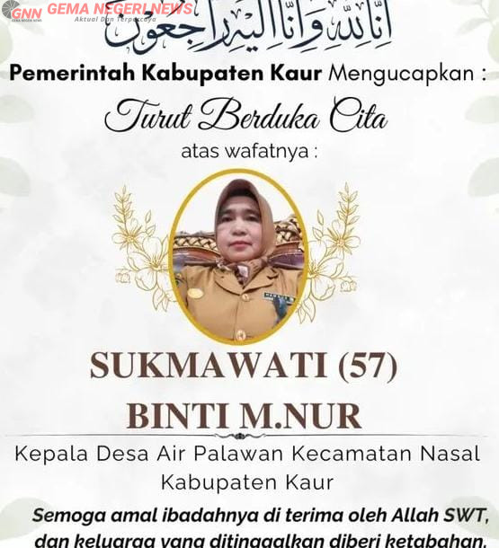 Diketahui, almarhumah Sukmawati telah mengabdikan diri sebagai Kepala Desa Air Palawan selama dua periode. Dedikasinya dalam membangun desa meninggalkan jejak penting bagi masyarakat Kecamatan Nasal, Kabupaten Kaur, Provinsi Bengkulu.*(Kif)