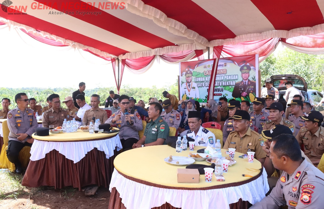KAUR (GemaNegeri.com) – Polres Kaur bersama Pemerintah Kabupaten Kaur mengikuti Zoom Meeting Launching Lomba Ketahanan Pangan Satu Desa Satu Hektare (Sadesahe) yang digelar serentak se-Provinsi Bengkulu, Senin (25/8/2025) di lahan pertanian Pemda Kaur, Desa Cucupan, Kecamatan Tetap.