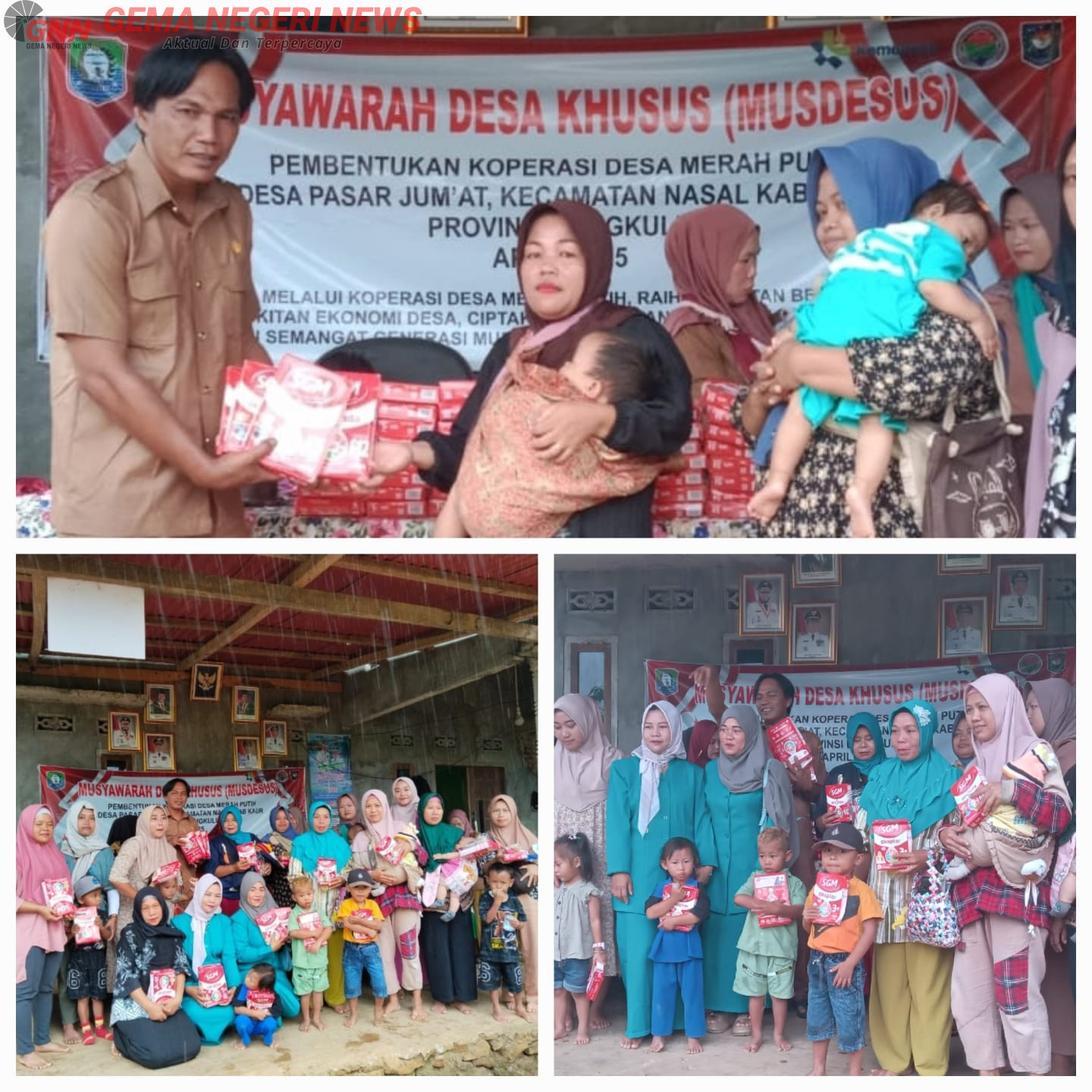 PASAR JUMAT, KAUR (GemaNegeri.com) – Pemerintah Desa (Pemdes) Pasar Jumat, Kecamatan Nasal, Kabupaten Kaur, Bengkulu, kembali melaksanakan kegiatan rutin pembagian Pemberian Makanan Tambahan (PMT) bagi balita dan lansia. Kegiatan ini merupakan bagian dari program Dana Desa tahun 2025 yang diselenggarakan bersama kader desa dan kader Posyandu setempat.
