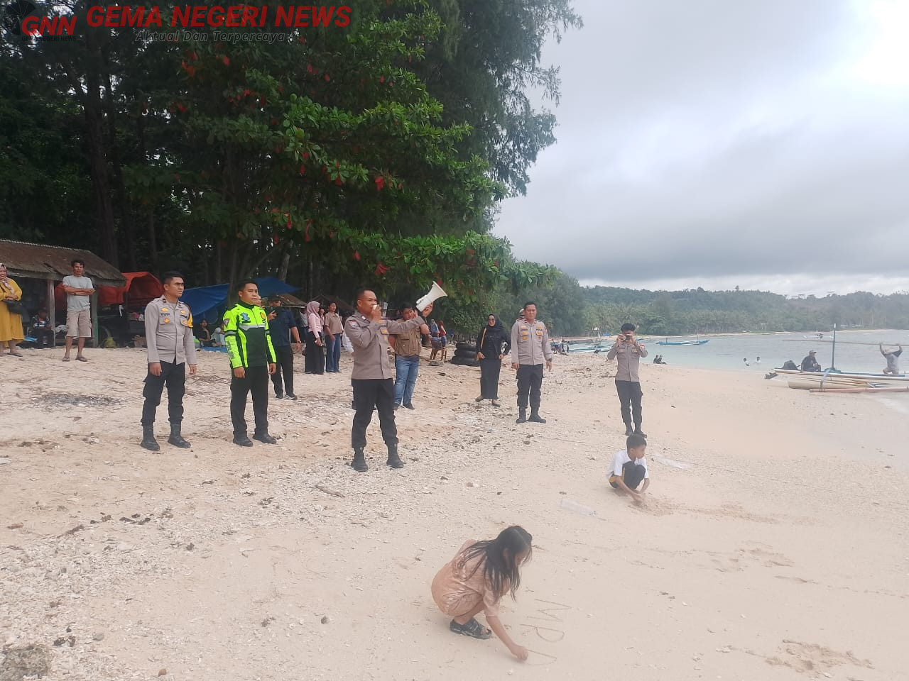 Petugas gabungan dari kepolisian, Pos Pelayanan, dan pihak kecamatan terus melakukan patroli serta memberikan himbauan secara persuasif kepada para pengunjung yang berada di sepanjang bibir pantai.