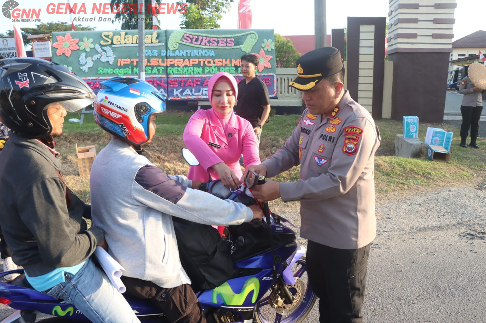 Polres Kaur Bagikan Bendera Merah Putih, Warga Antusias Sambut Semangat Nasionalisme