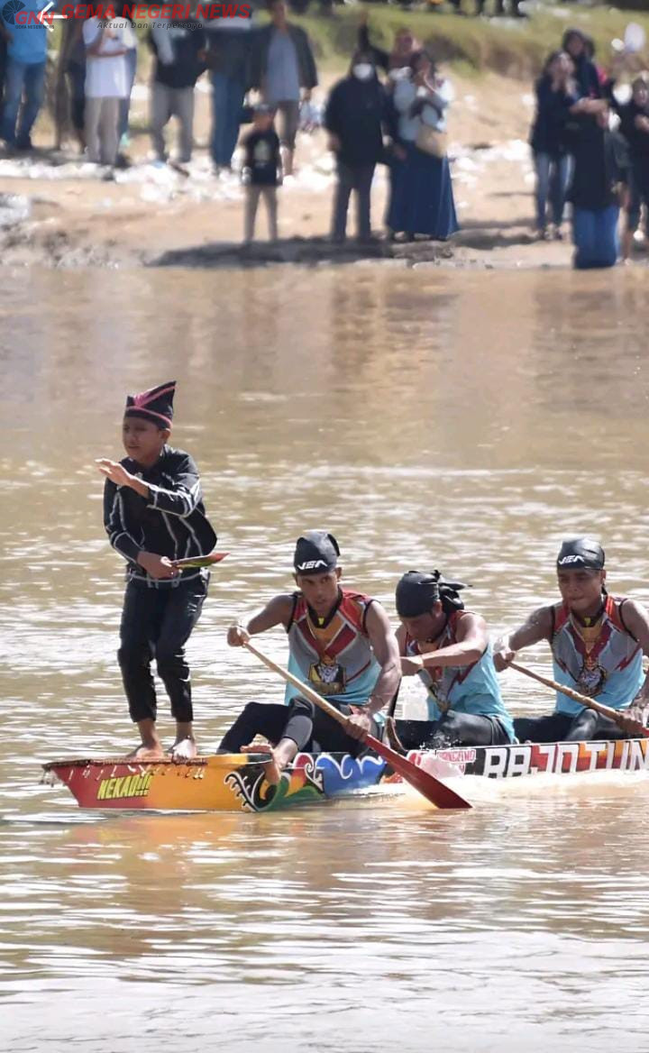 HULU KUANTAN, KUANSING (GemaNegeri.com) – Perlombaan Pacu Jalur Rayon II Hulu Kuantan yang digelar di Tepian Pulau Gobah memasuki hari kedua pada Sabtu ini. Berbagai laga seru dan menegangkan tersaji sejak pagi, salah satunya adalah pertandingan antara Rajo Tunggal Rimbo Binuang Sahabat Bang Vea dari Seberang Taluk melawan jalur unggulan Selendang Putie Bukit Keramat dari Teluk Beringin. Sabtu (21/06/2025.