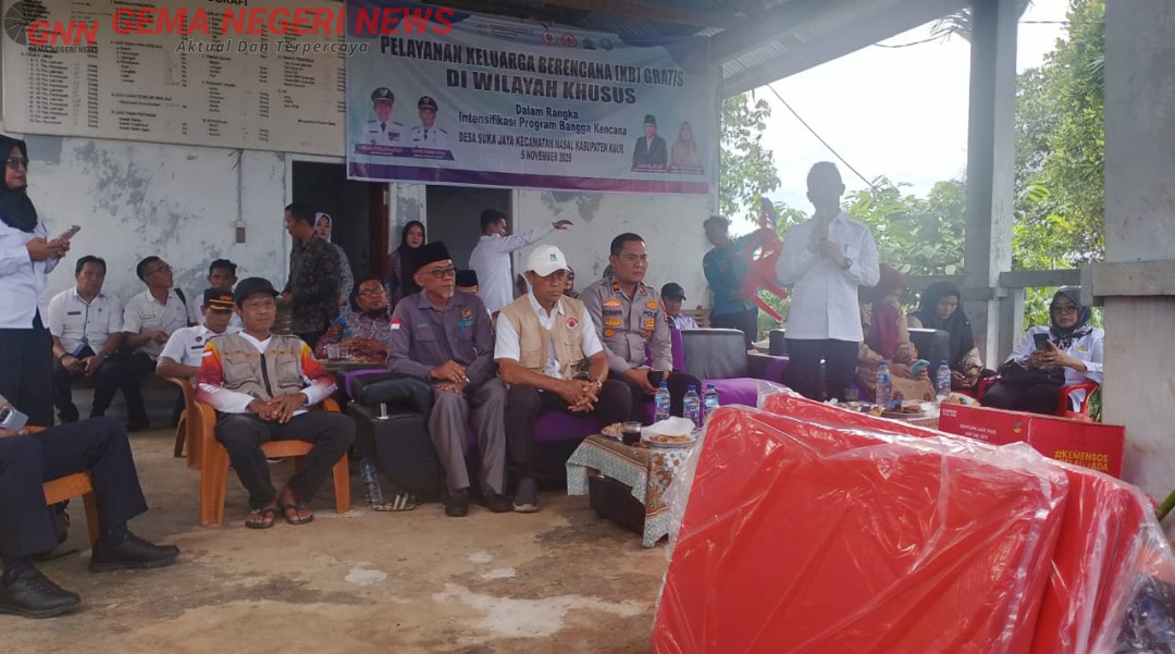 KAUR (GemaNegeri.com) — Wakil Bupati Kaur, Abdul Hamid, S.Pd., M.M., menghadiri acara Sosialisasi KB MKJP (Metode Kontrasepsi Jangka Panjang) sekaligus Pelayanan KB Gratis yang digelar di Balai Desa Sukajaya, Kecamatan Nasal, pada Rabu (5/11/2025) pukul 08.00 WIB.