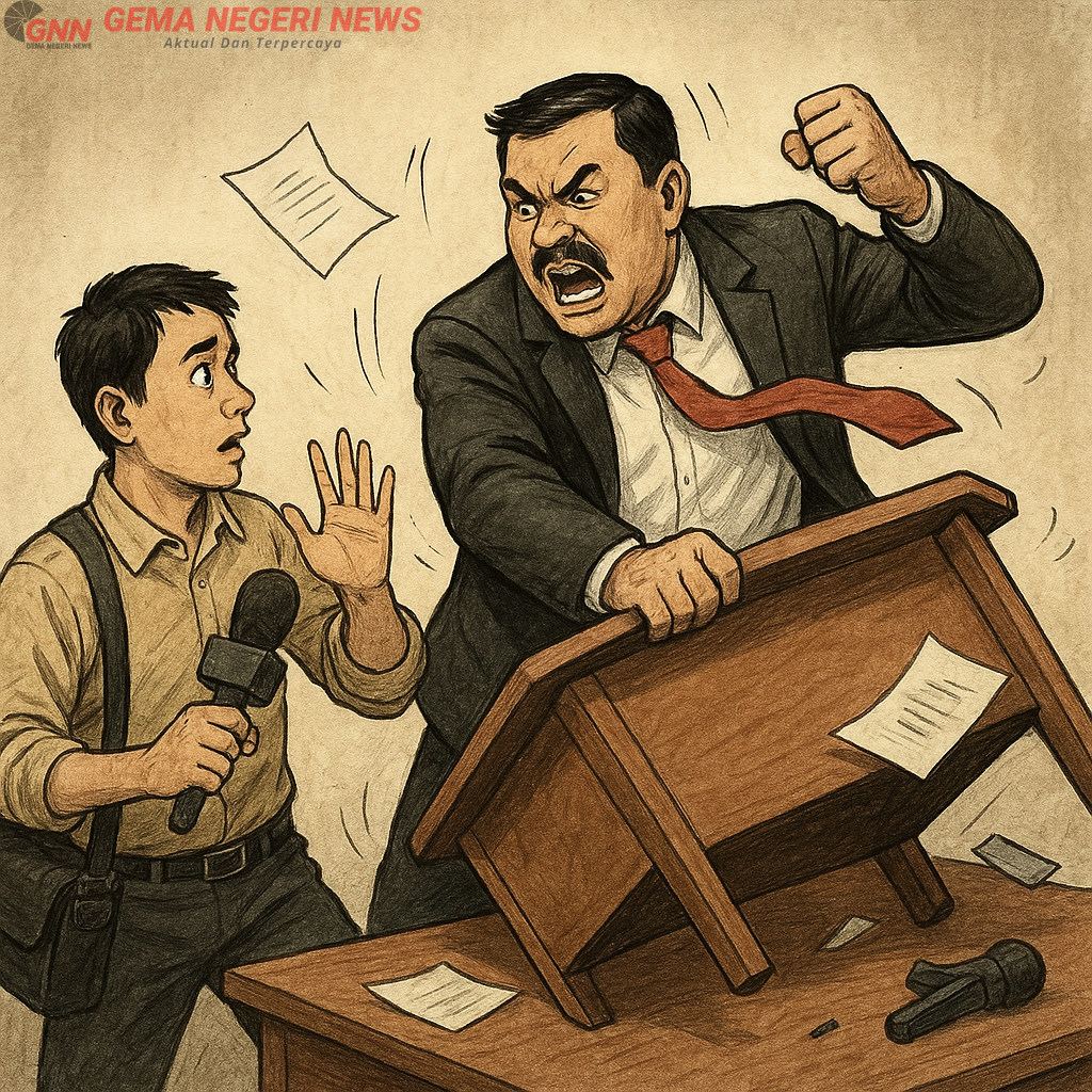 Alih-alih mendapat jawaban, wartawan justru dihadapkan pada kemarahan. Berdasarkan rekaman dan kesaksian langsung, H. Pahri disebut membanting meja, menendang kursi, dan melontarkan kata-kata kasar serta hinaan terhadap wartawan. Ia bahkan sempat menantang duel sambil berkata,